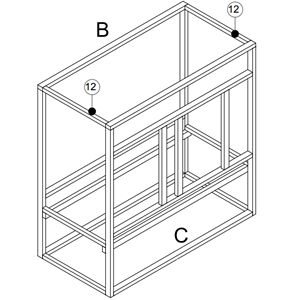 - Bevestig items 12 en 13 aan het geheel met dezelfde schroeven. Boor eerst gaten voor.